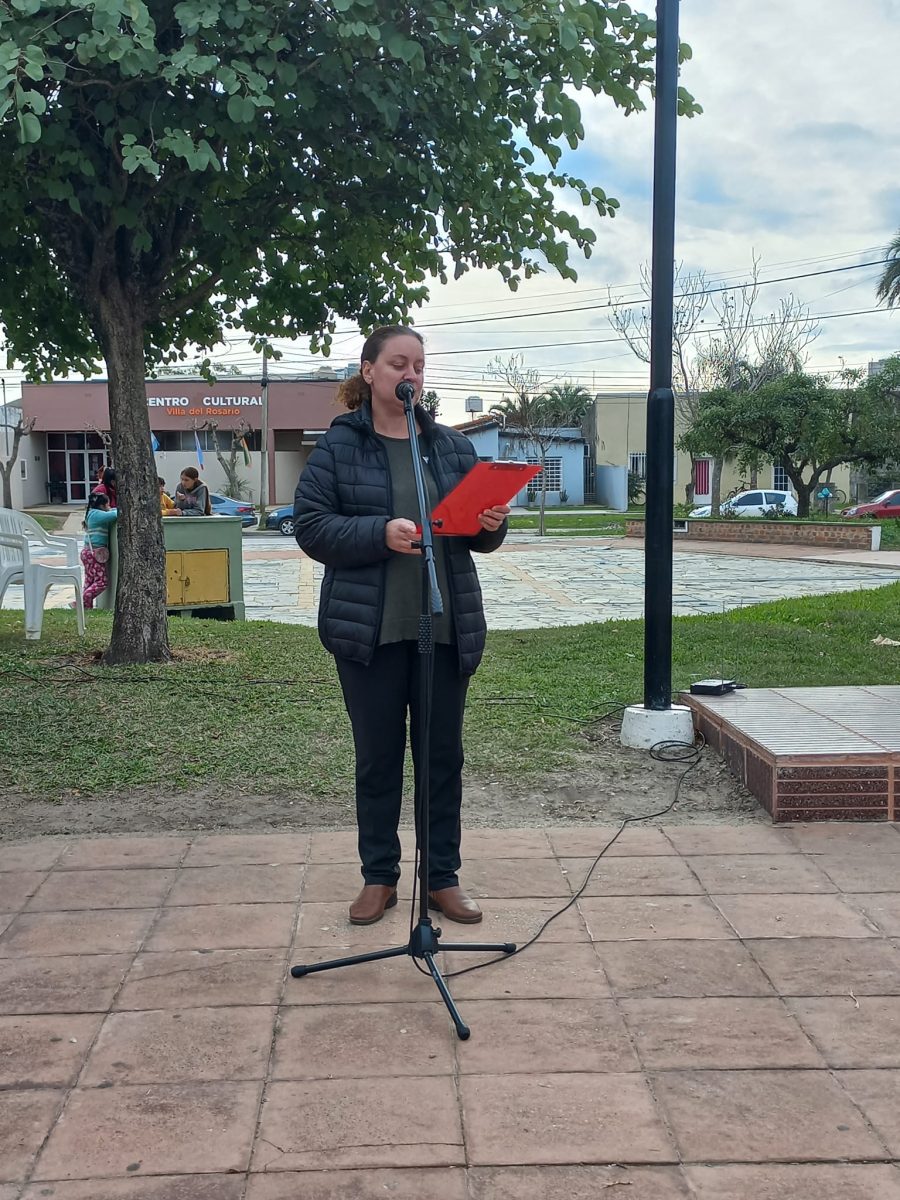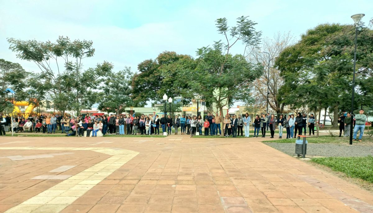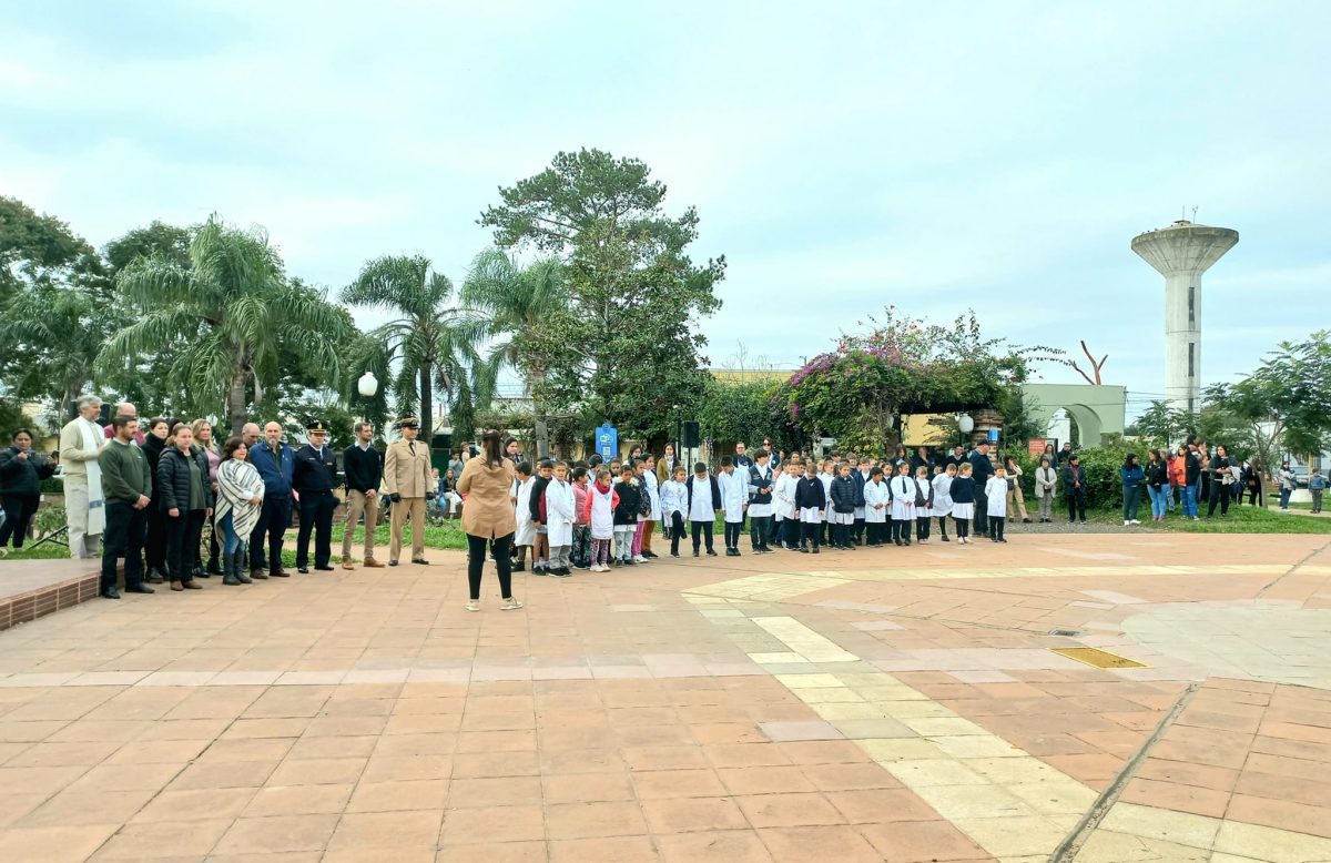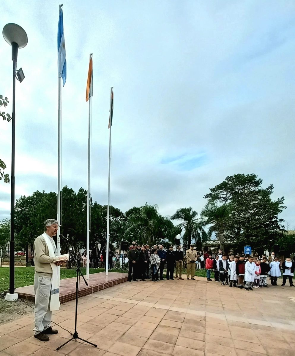 La ceremonia se realizó en la plaza José Manuel Estrada y fue encabezada por la intendente, Vanina Perini. Además, contó con la participación de de funcionarios municipales, concejales, autoridades de fuerzas de seguridad; directivos, docentes y alumnos de escuelas locales y rurales, y público en general.