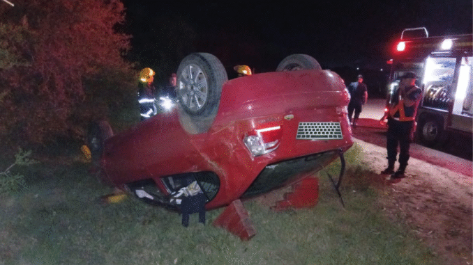 Al arribar, constataron que un automóvil Renault Megane, de color rojo, había despistado y volcado por causas que se tratan de establecer. En el interior del rodado se encontraba una persona atrapada, por lo que se procedió a realizar tareas de liberación.