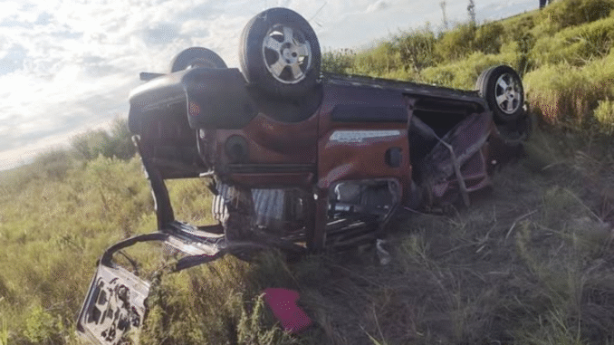 Personal de la Comisaría Colonia Yeruá acudió al lugar tras ser alertado sobre el siniestro. Por causas que aún se tratan de establecer, un utilitario Renault Kangoo que circulaba en sentido Este-Oeste, conducido por una mujer mayor de edad, perdió el control y terminó volcando sobre el cantero central de la ruta.